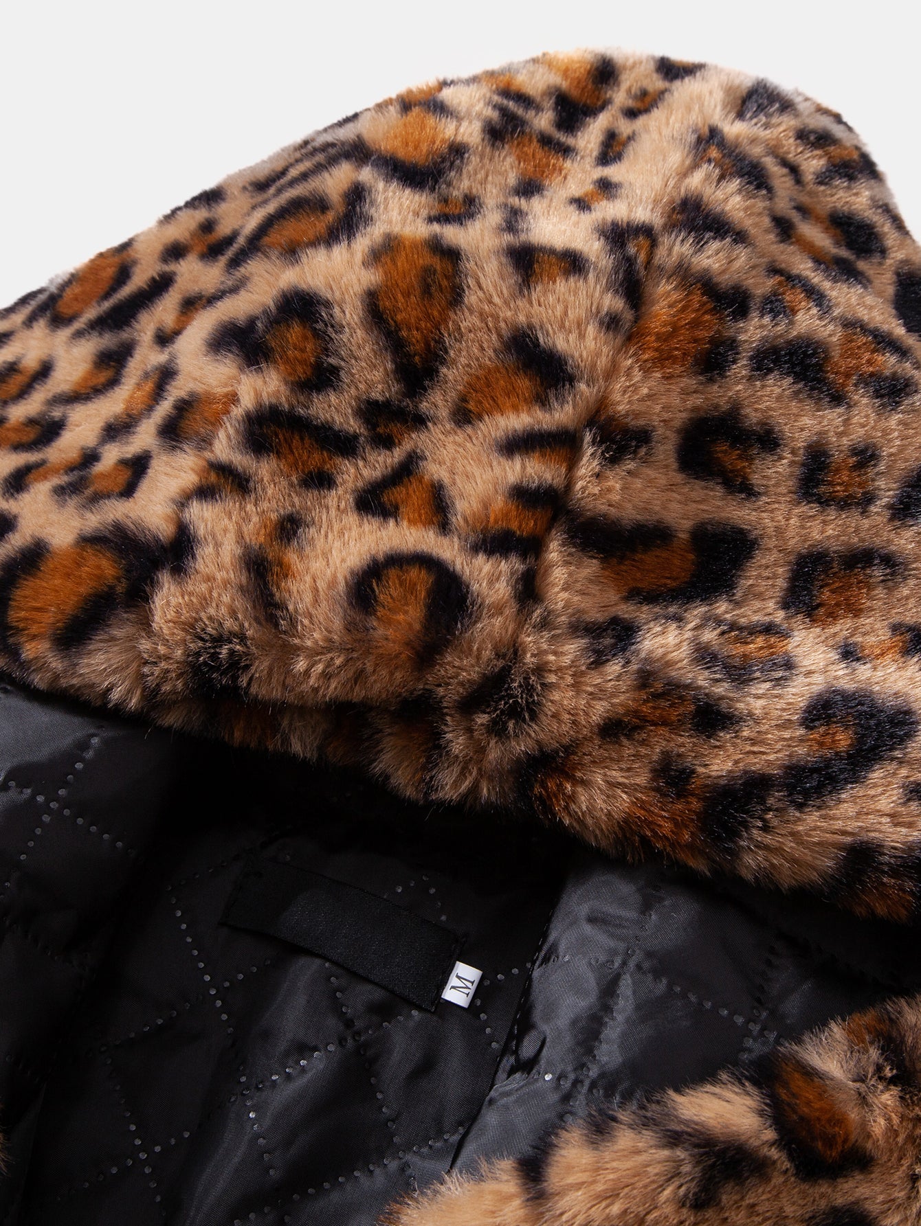 Crafted from ultra-soft faux fur, this statement coat features a bold leopard print that adds a touch of wild elegance to your winter wardrobe. The attached hood offers extra warmth and protection against cold winds, while the longline silhouette creates a flattering and cozy fit.