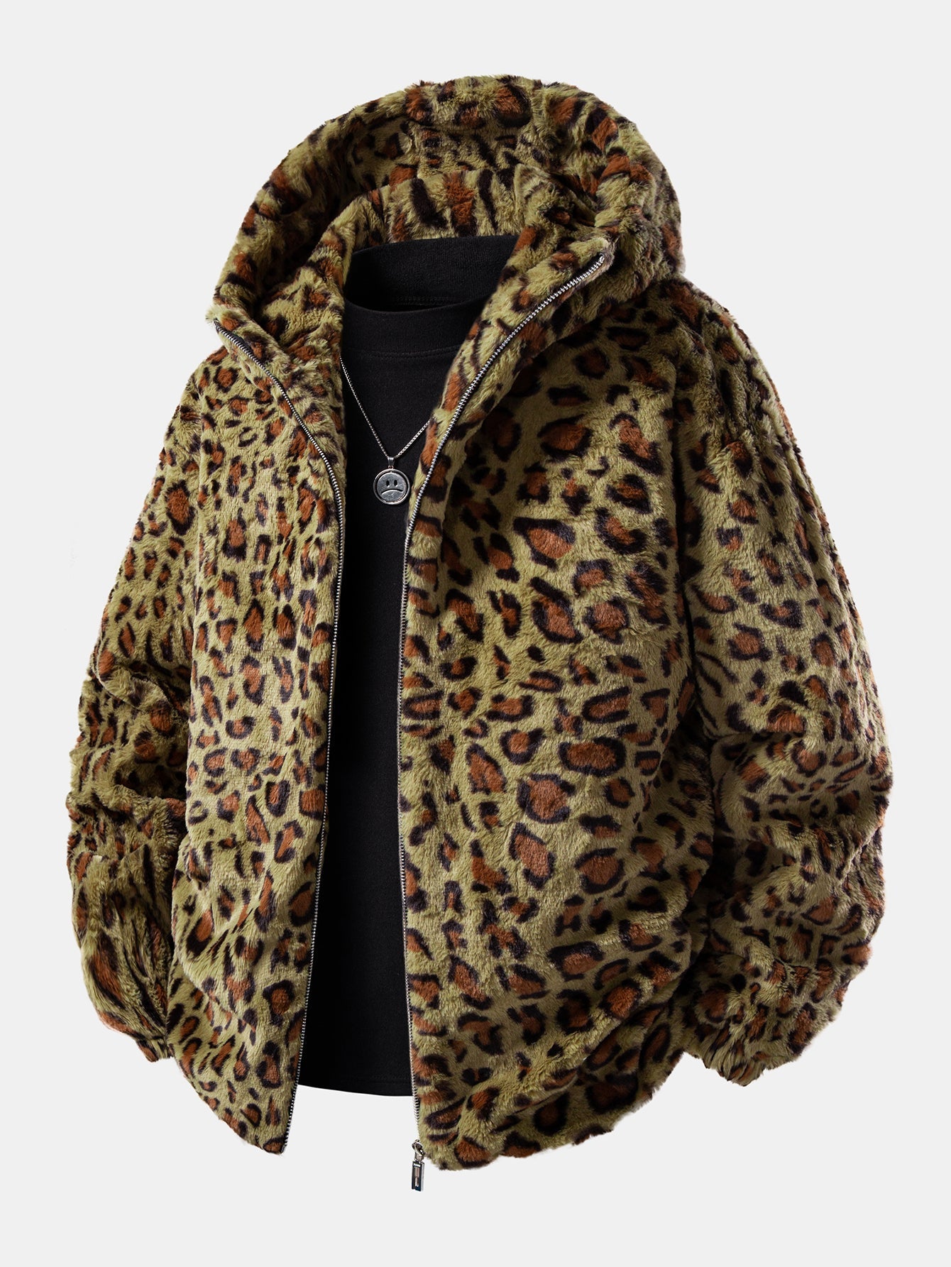 Featuring a bold leopard pattern and ultra-soft teddy fleece fabric, this hoodie delivers cozy warmth with a trendy edge. The zip-up design makes it easy to layer, while the relaxed silhouette ensures all-day comfort.