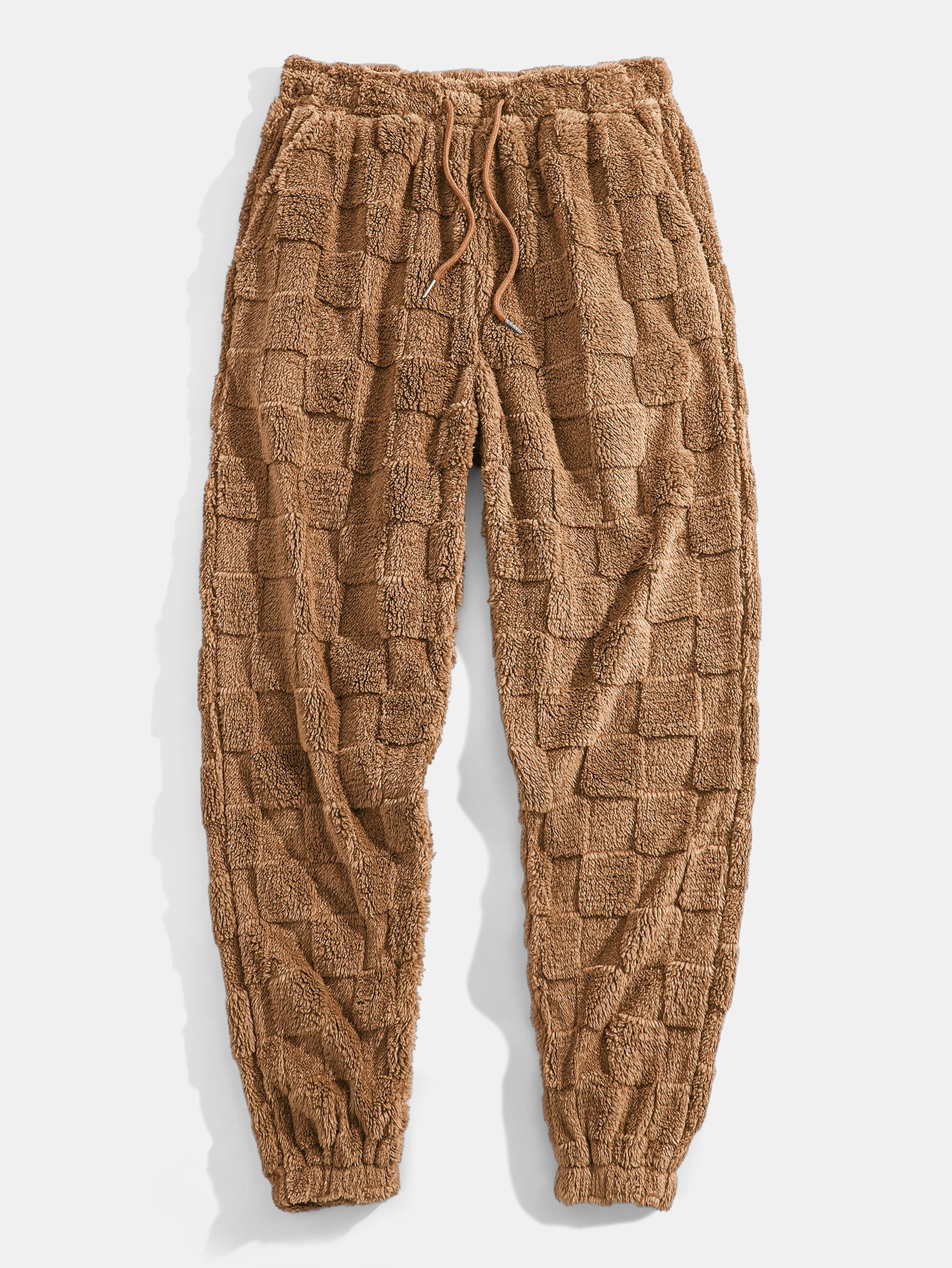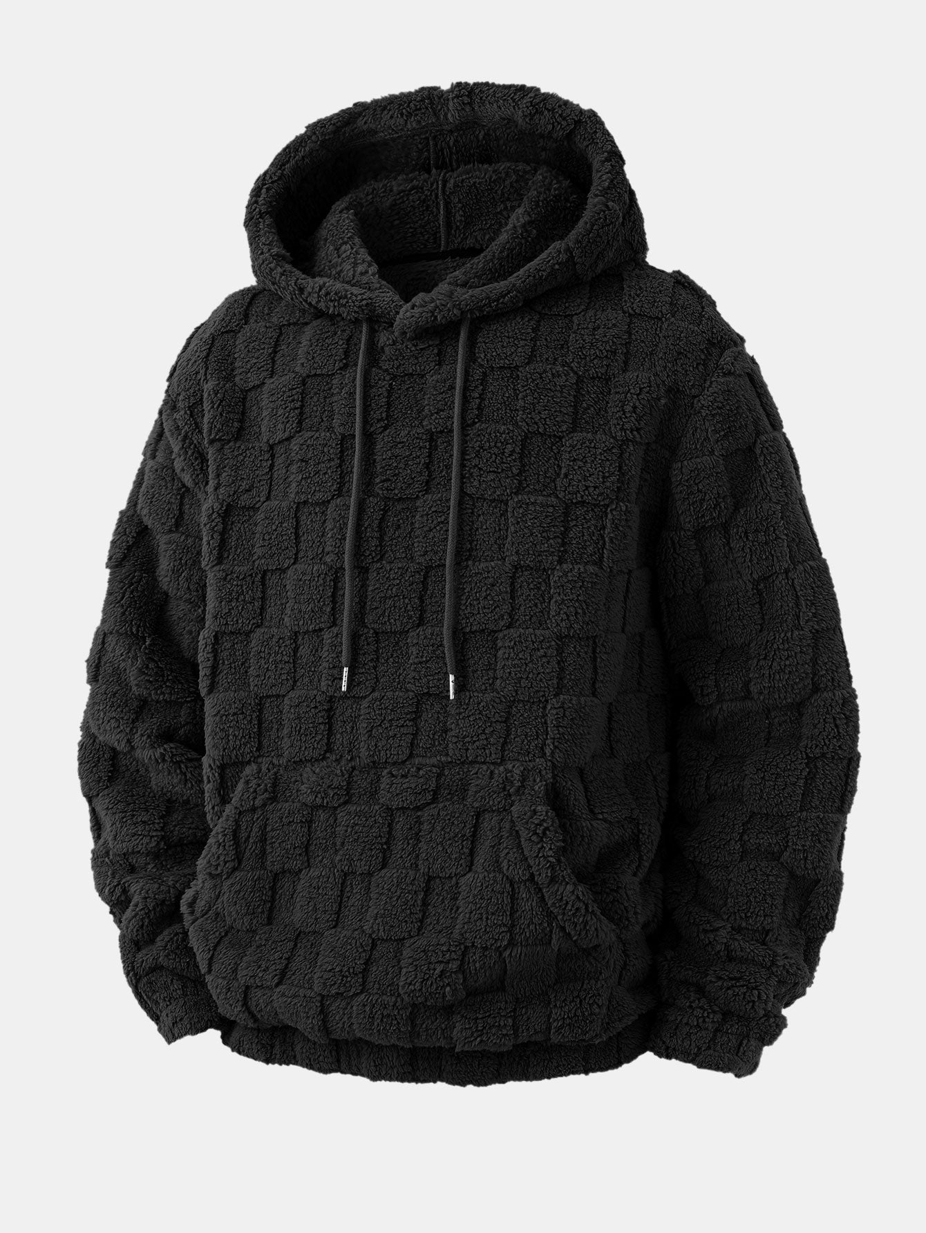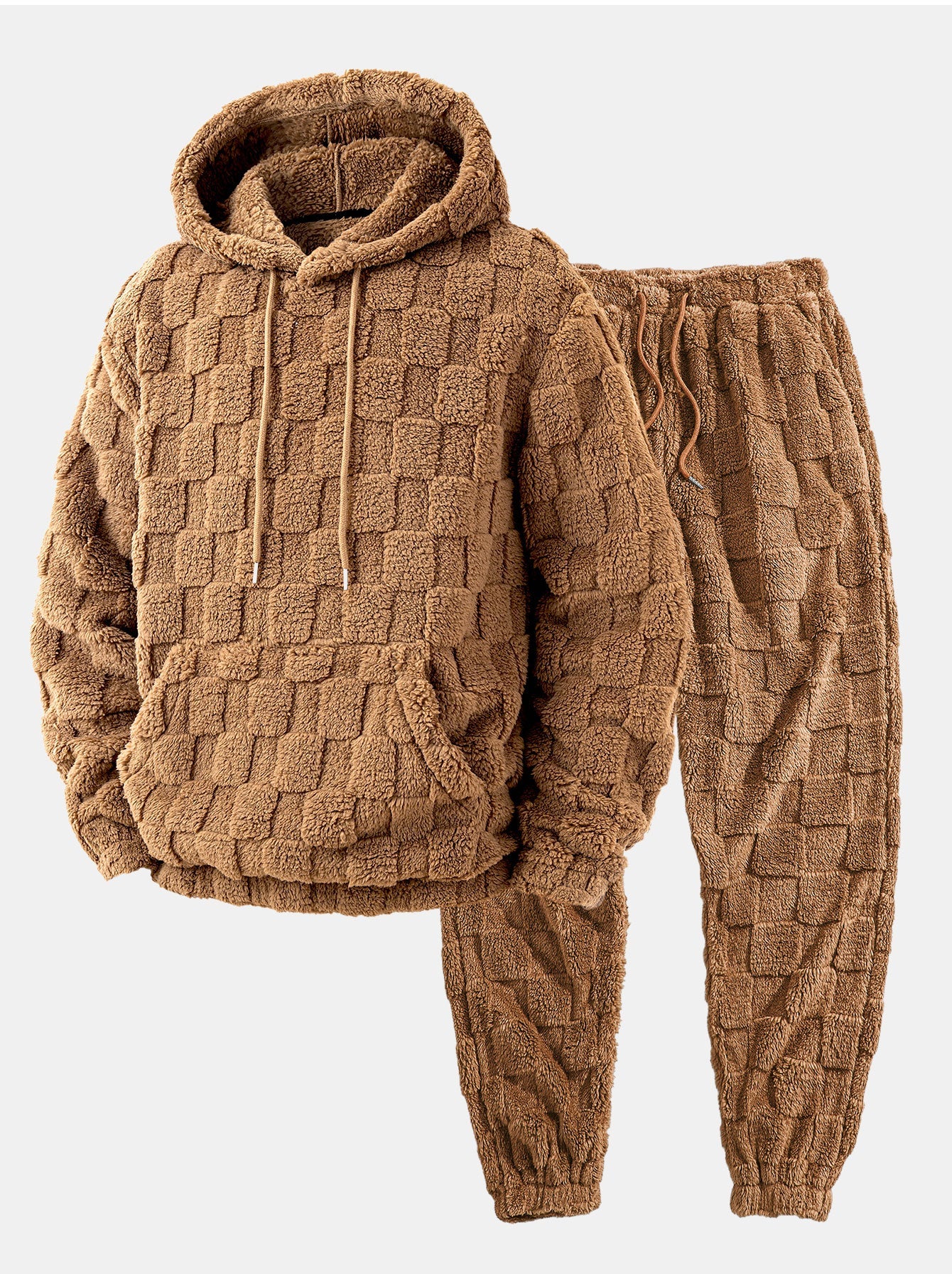Relax Fit Checkerboard Kangaroo Pocket Teddy Hoodie & Jogger Pants