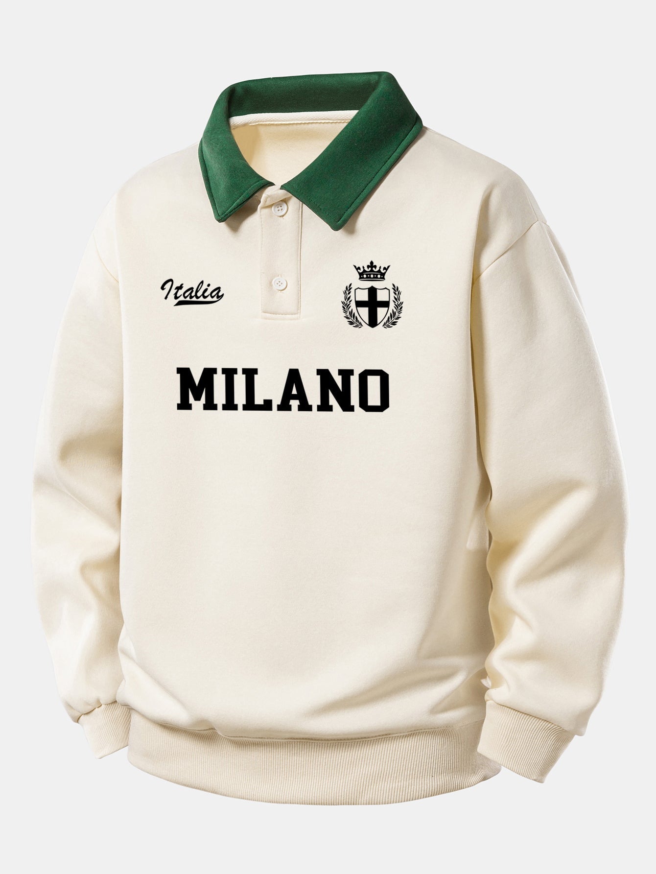 Featuring a bold ''Milano'' graphic and a contrast polo collar, this sweatshirt blends sporty details with everyday comfort. Crafted from soft, breathable fabric, it provides a relaxed fit for effortless style. Perfect for layering or wearing on its own, it's ideal for casual outings, weekend activities, or travel.