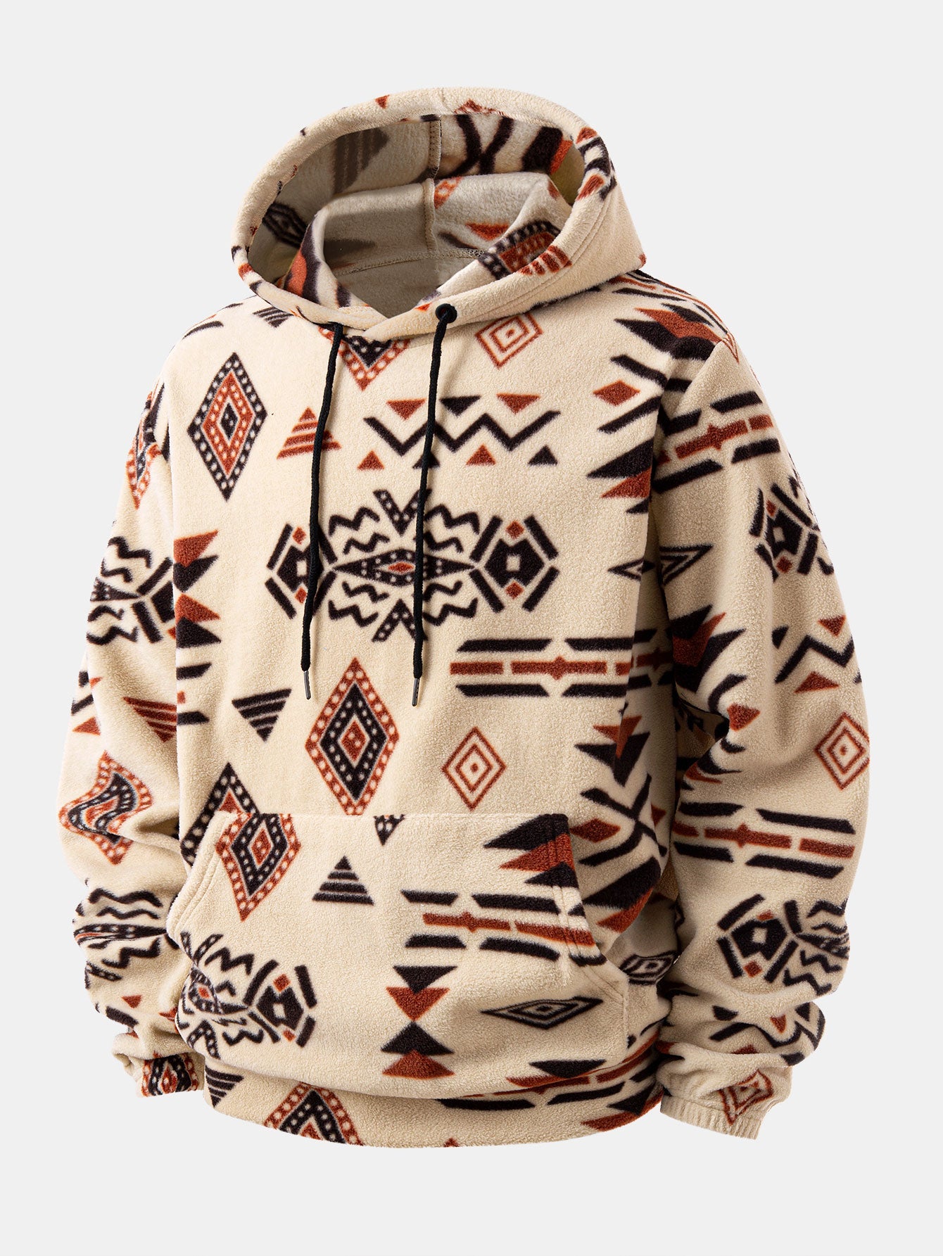 Relax Fit Tribal Geometry Teddy Hoodie & Shorts