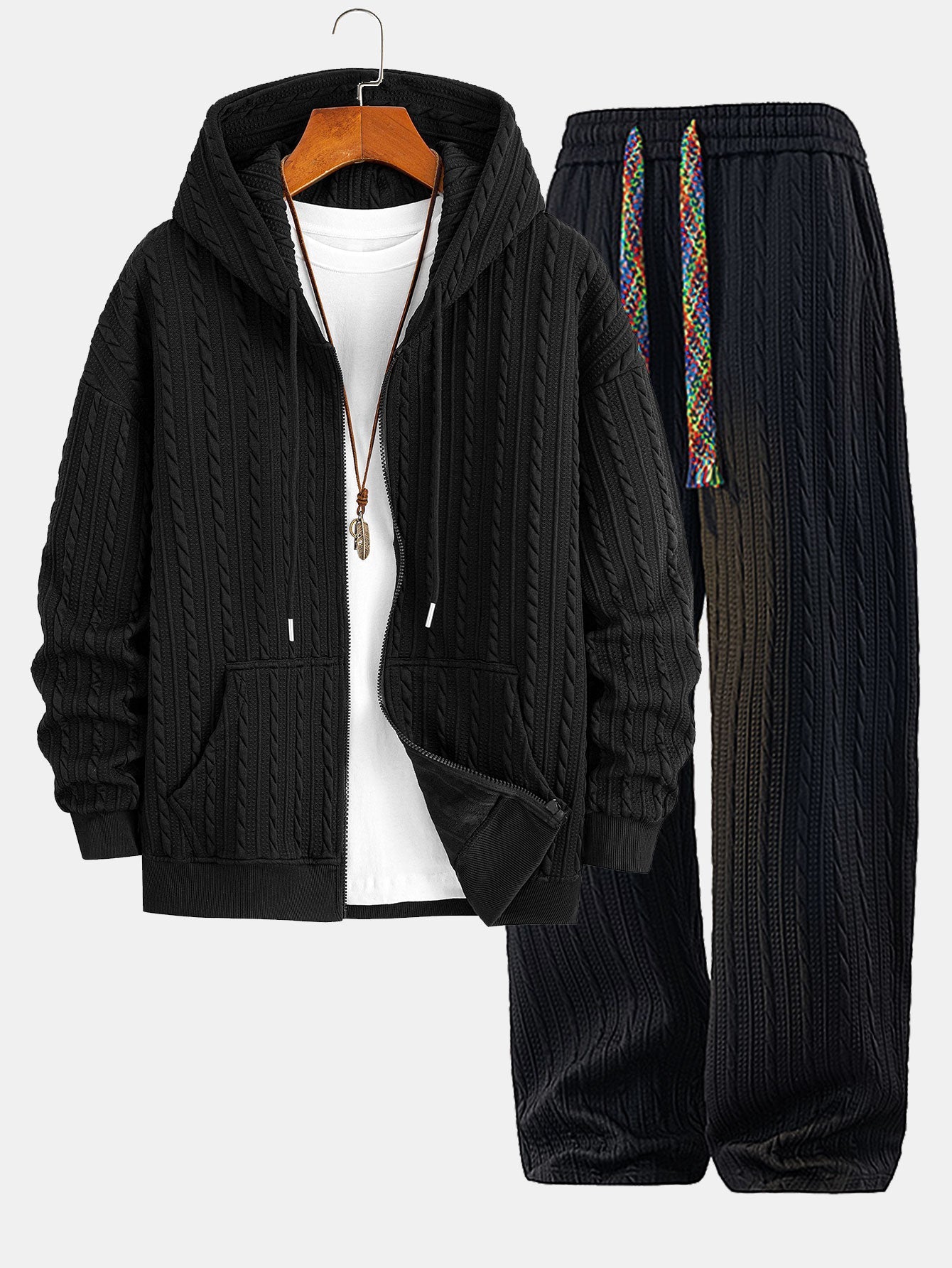 Relax Fit Twist Jacquard Zip Up Hoodie & Twisted Jacquard Straight Leg Pants