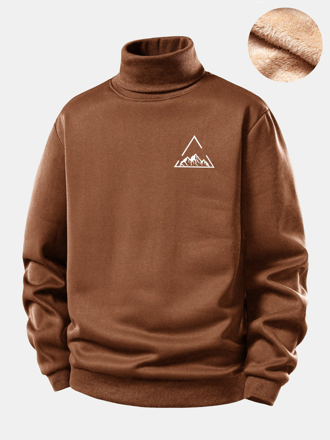 Mountain Print Teddy Fleece Lined Turtle Neck Sweatshirt