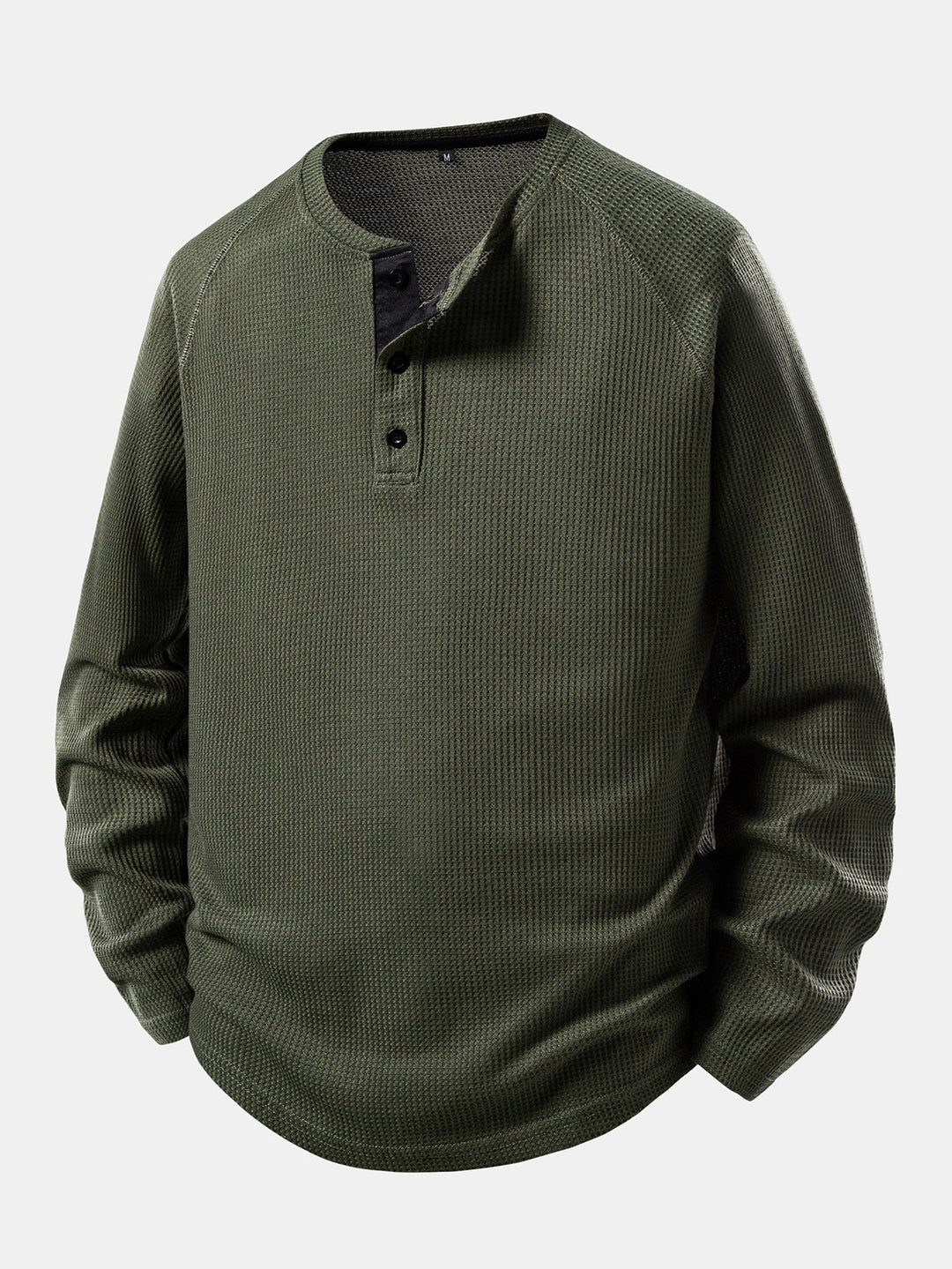 Camisa Henley Waffle com Manga Longa e Barra Arqueada