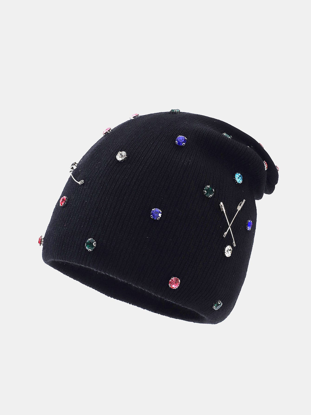 Fashion Punk Style Warm Rhinestone Knit Beanie Hat With Brooch Pin