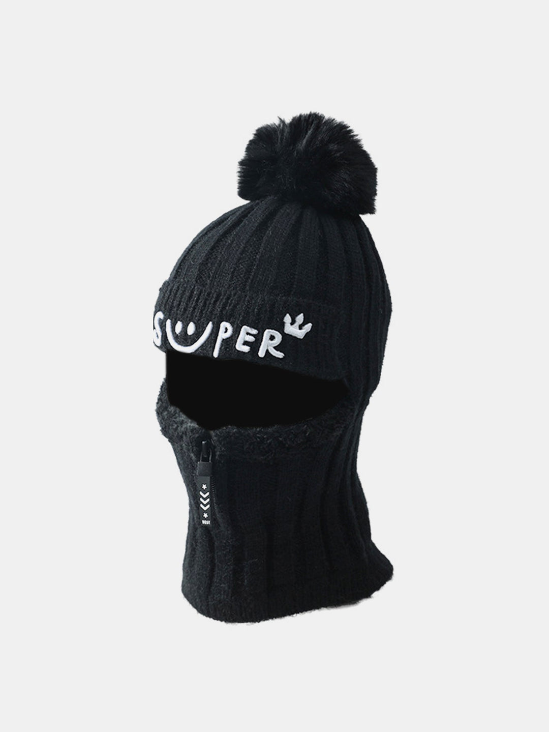 Winter Fleece-Lined Beanie Hat With Zipper Face Mask
