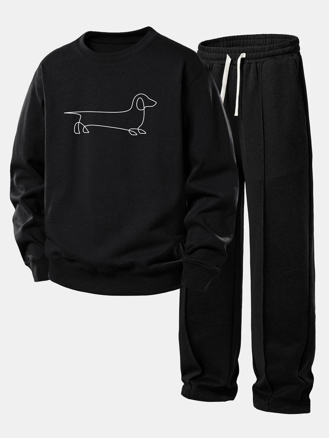 Line Dachshund Print Relax Fit Sweatshirt & Straight Leg Pleated Pintuck Sweatpants