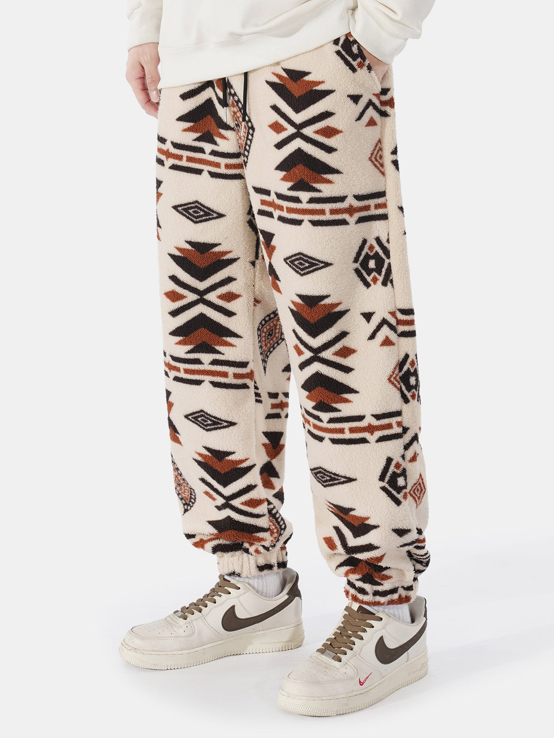 Tribal Geometry Pattern Teddy Jogger Pants