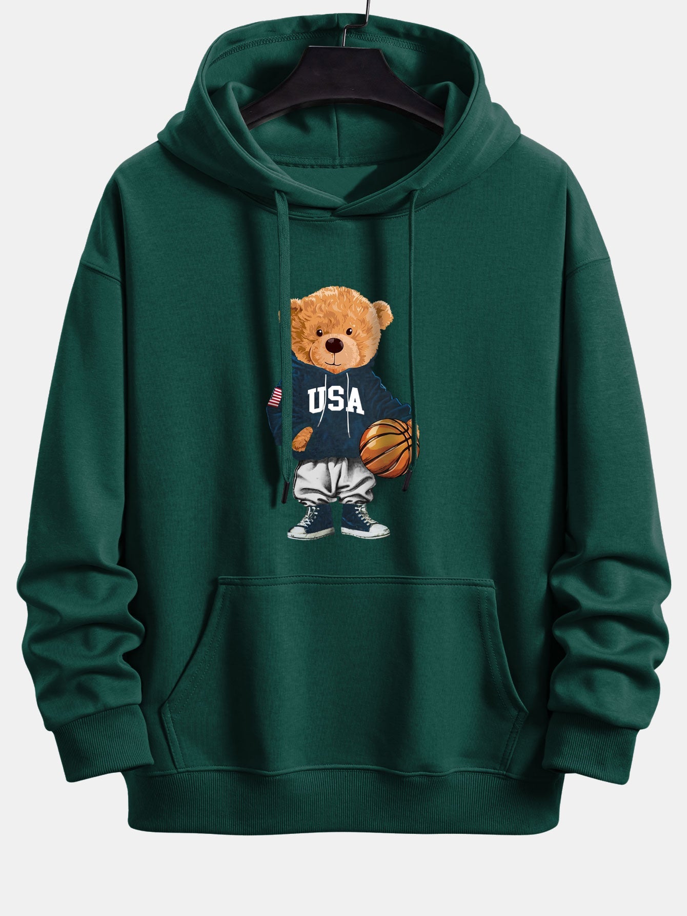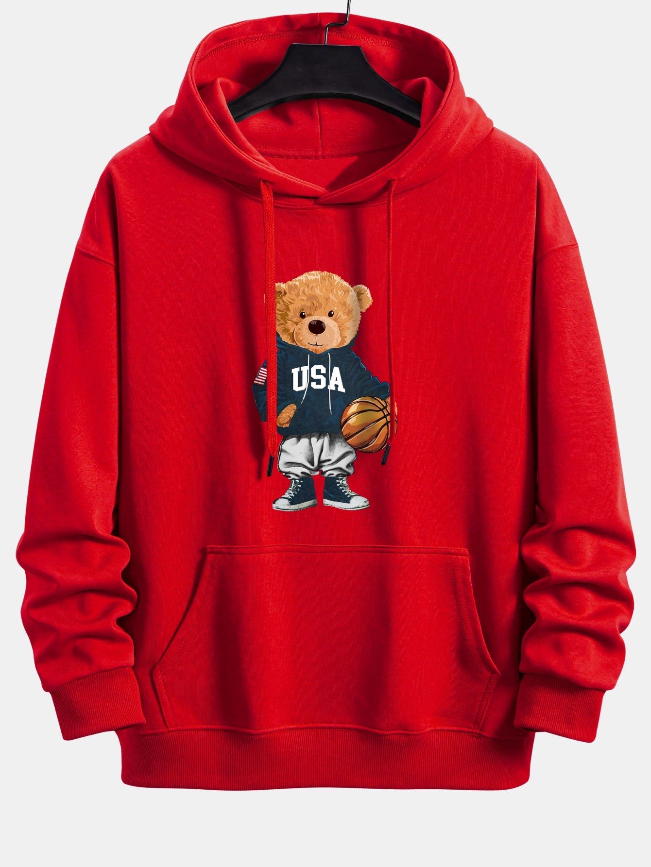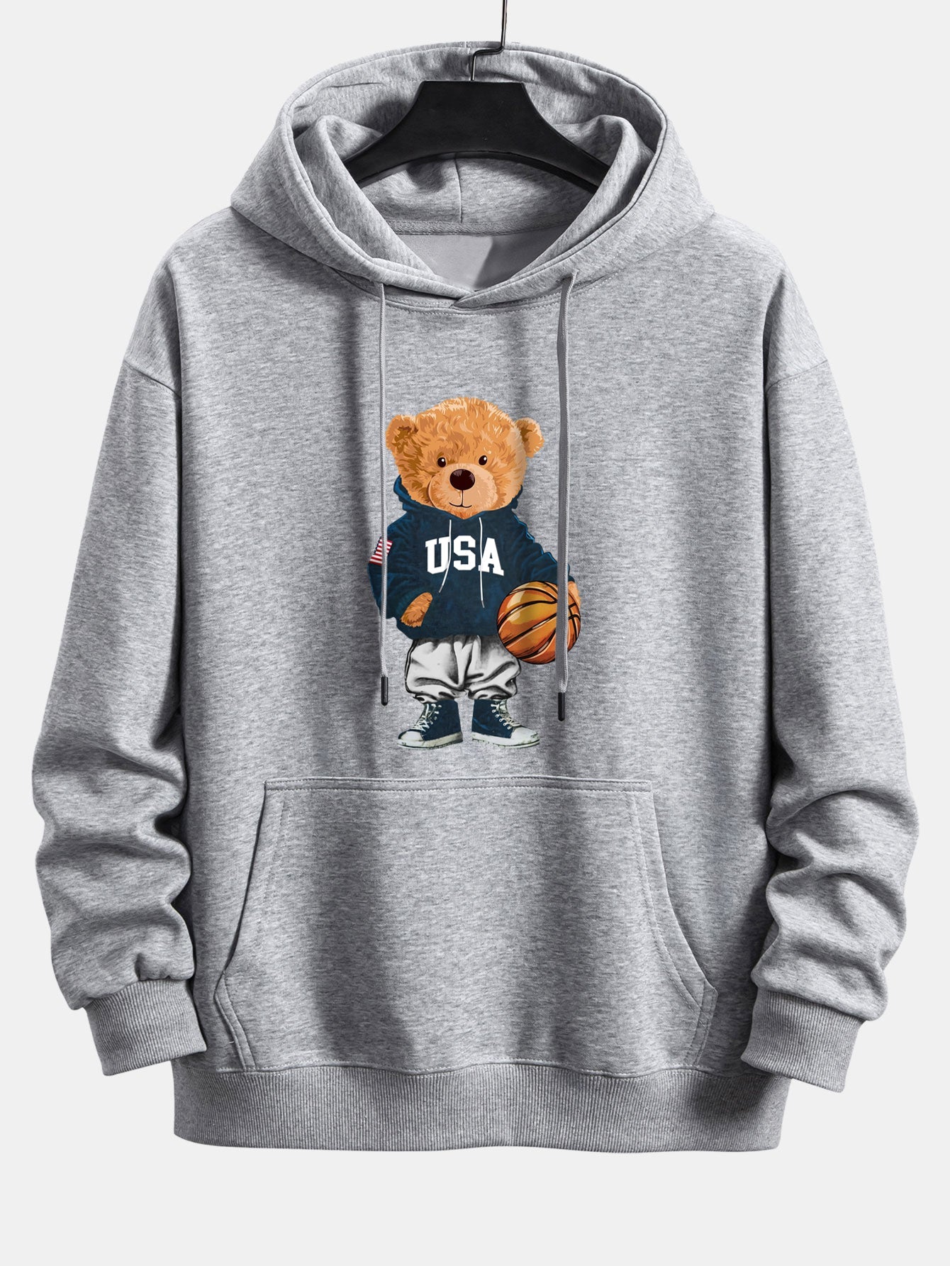 Add a fun, sporty vibe to your casual wardrobe with this basketball bear print relax fit drawstring hoodie. Featuring a playful bear graphic dressed in basketball gear, this hoodie brings a unique combination of athletic style and cute streetwear attitude.