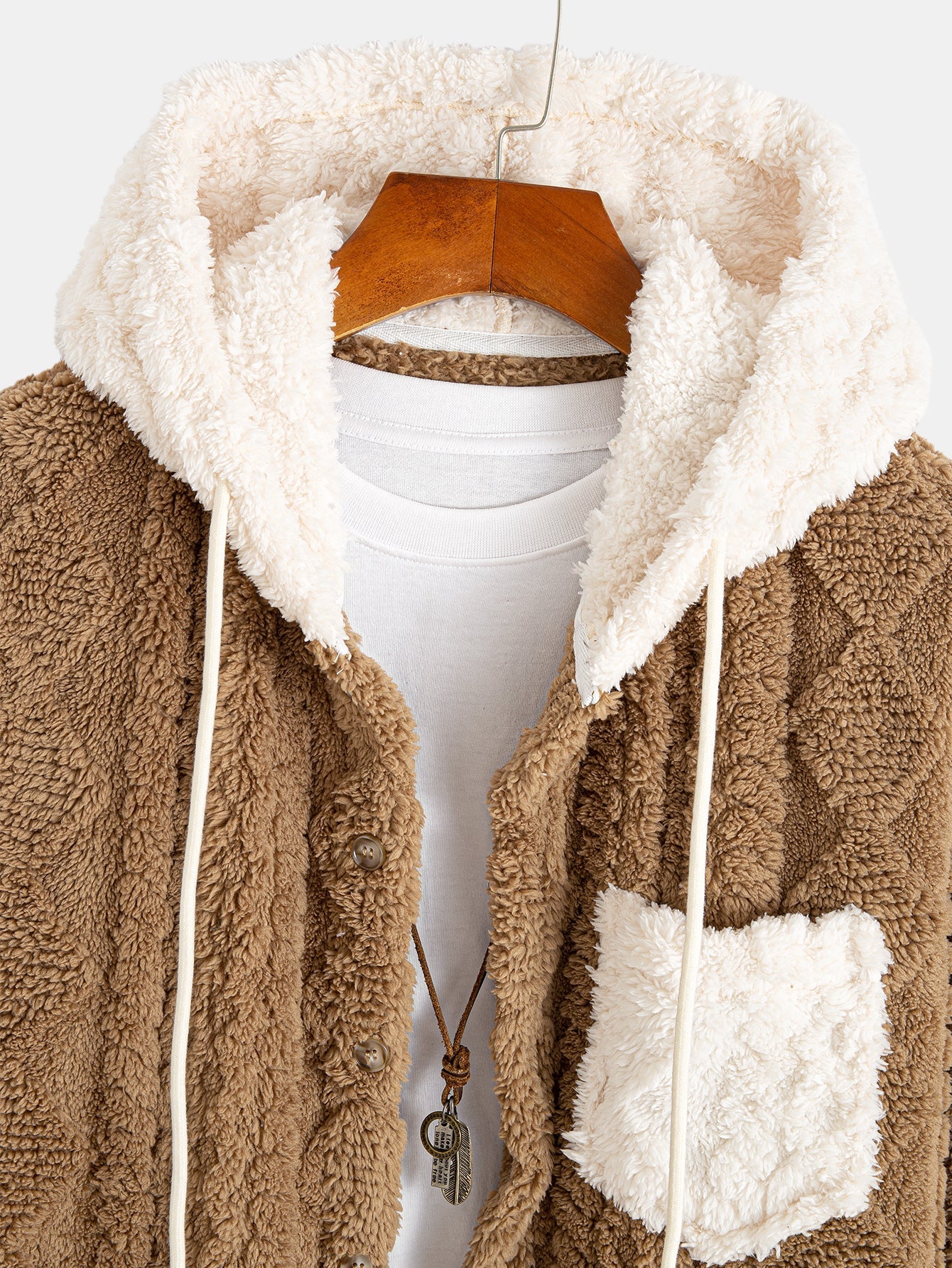 Featuring a bold geometric jacquard pattern, this hoodie blends contemporary design with cozy comfort. The plush teddy fleece lining provides exceptional warmth, while the relaxed fit and adjustable hood make it perfect for layering, lounging, or casual streetwear. Make a statement this season with both style and comfort in one versatile hoodie.