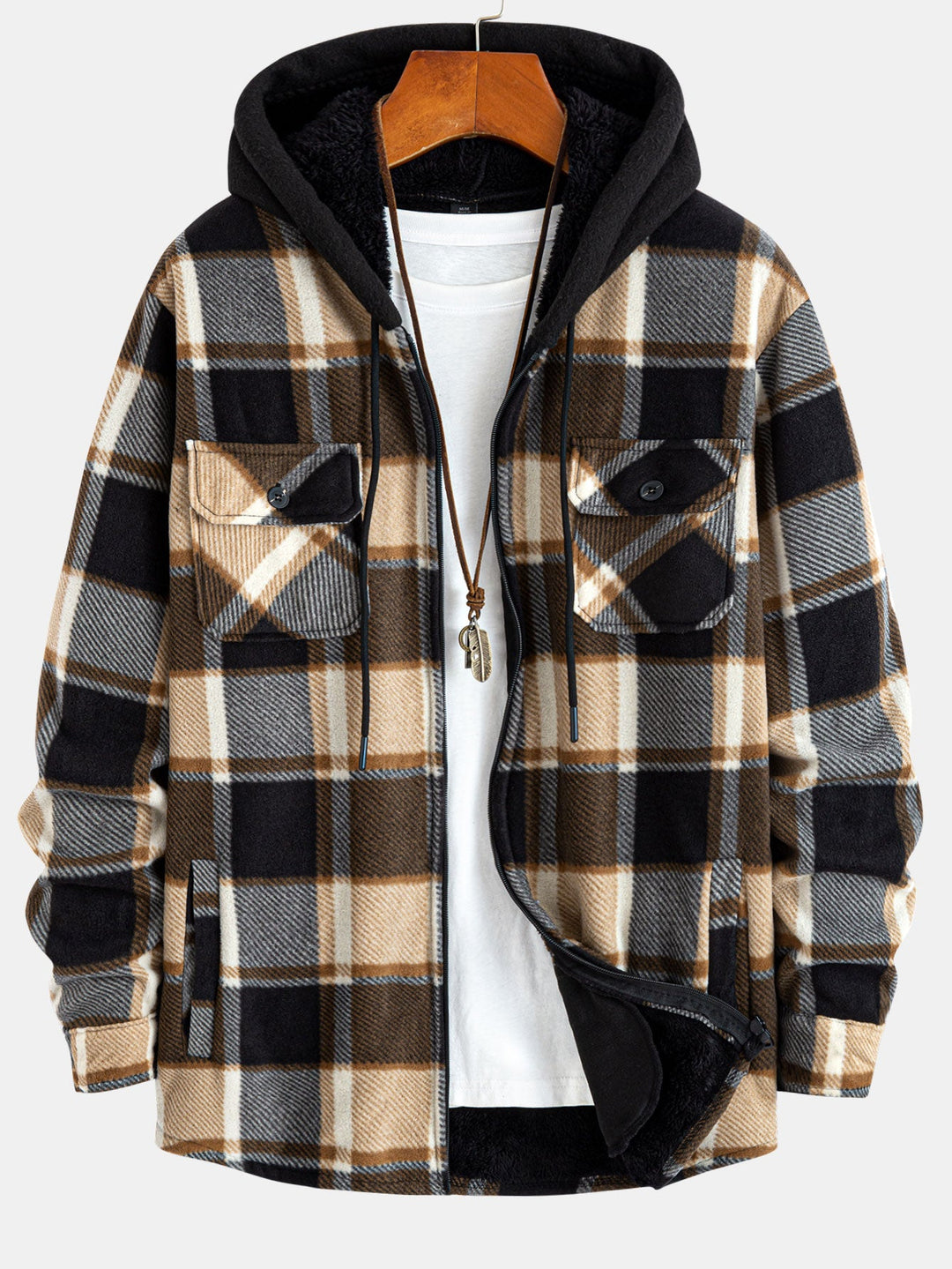 Flannel Fleece Lined Zip Up Hooded Shirt